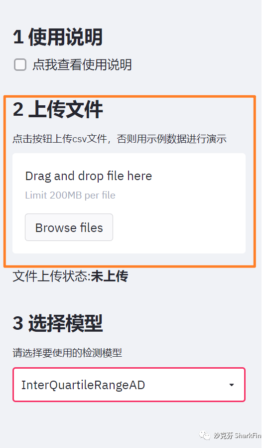首先进入在线应用 https://share.streamlit.io/sharkfin-top/streamlitwebapp/main/ADTK/test.py